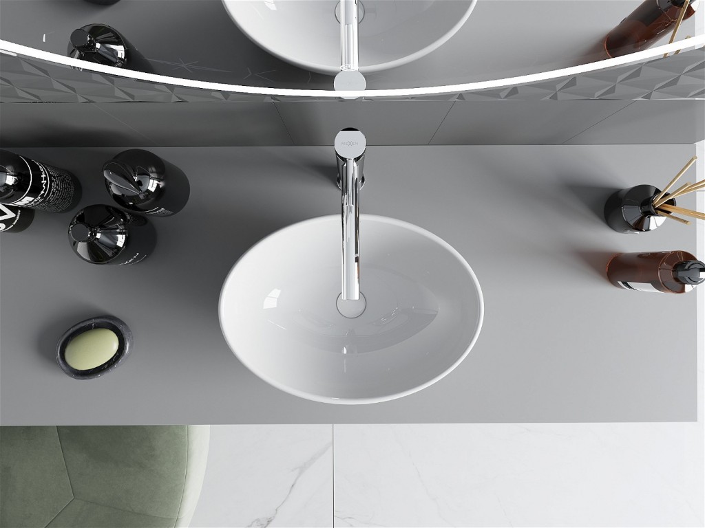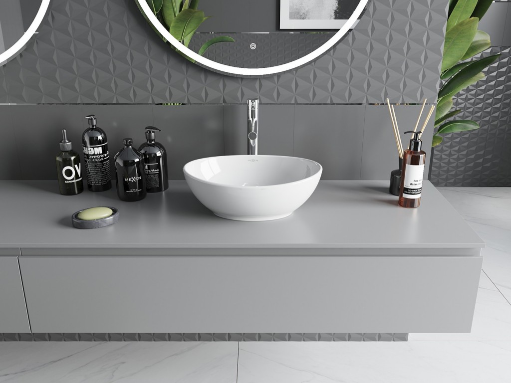 Keramické umývadlo na dosku ELZA od výrobcu MEXEN doplní akúkoľvek kúpeľňu a dodá jej neuveriteľný šmrnc modernosti. Jeho štíhle hrany vytvárajú perfektný minimalistický dizajn . Môžete ho namontovať na dosku alebo na kúpeľňovú skrinku a zároveň tak ušetriť drahocenný priestor.