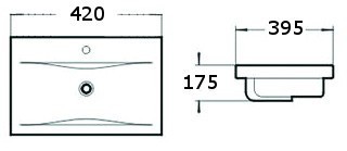 Samotné umývadlo na dosku je dlhé 42 cm a hlboké 39 cm. Umývadlo má bezpečnostný prepad a otvor pre batériu. Preto k nemu vyberajte nízku umývadlovú batériu .