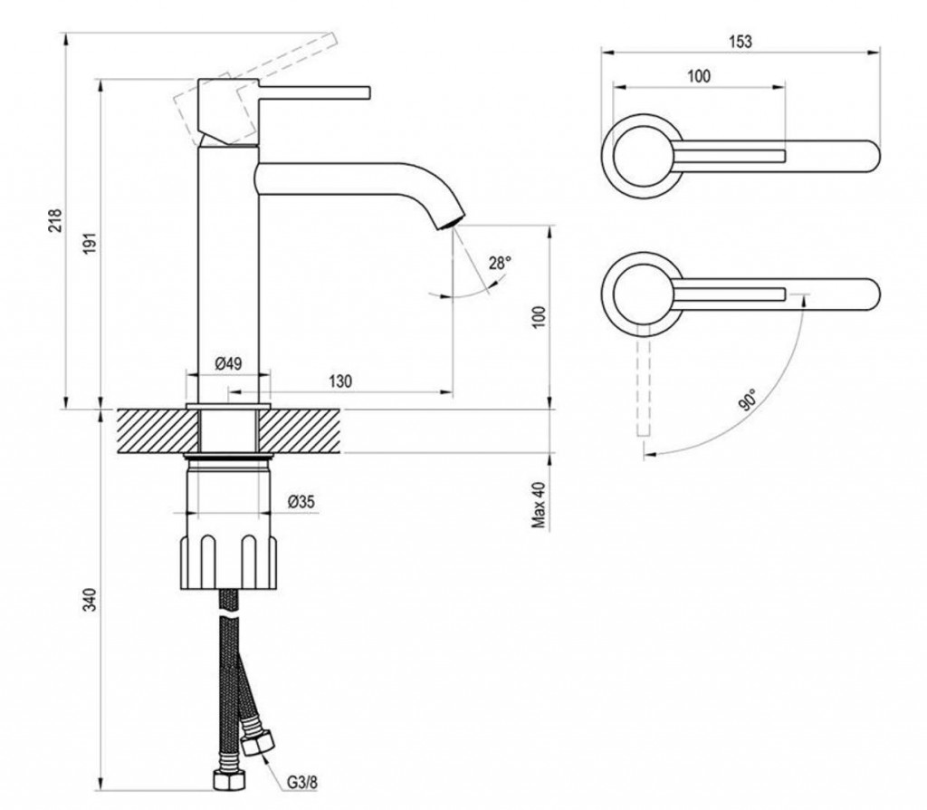 Umývadlová stojanková batéria, bez výpustu
