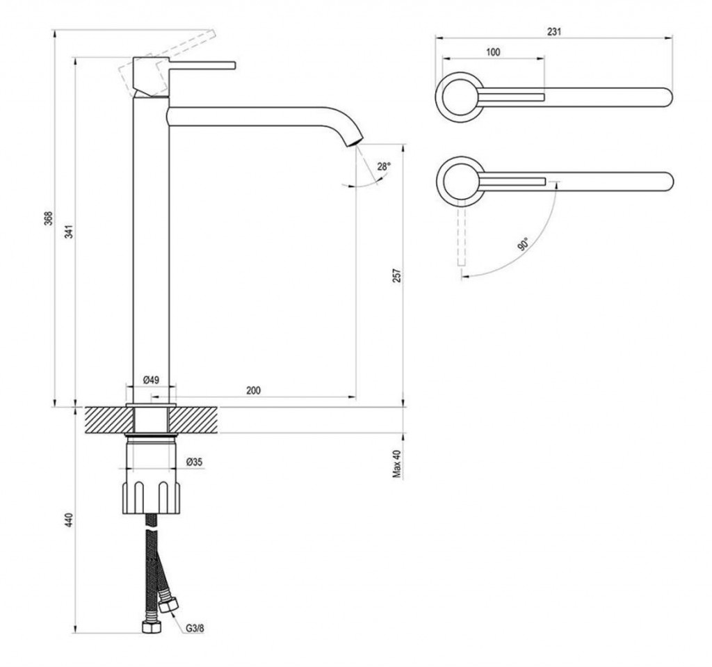 - vysoké prevedenie, vhodná pre umývadlá na dosku