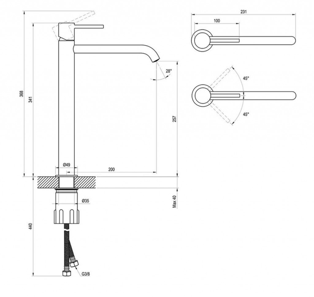 - vysoké prevedenie, vhodná pre umývadlá na dosku