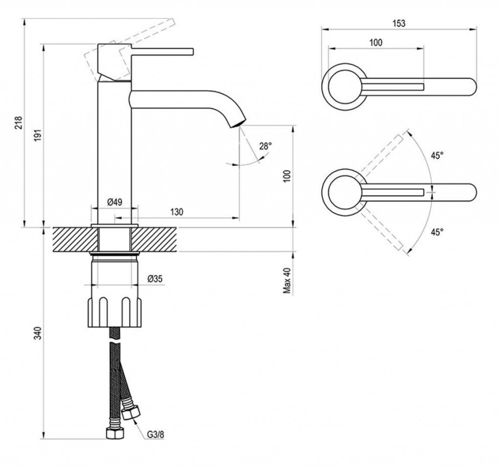 - dĺžka výtoku 130 mm