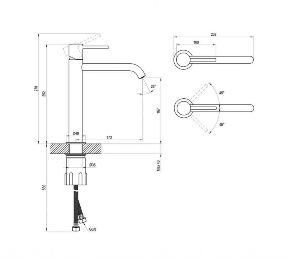- dĺžka výtoku: 173 mm