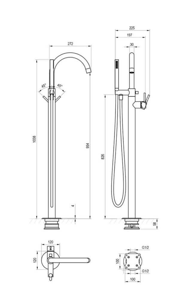 Vaňová batéria na podlahu s príslušenstvom ES 080.60GLB.RB07G