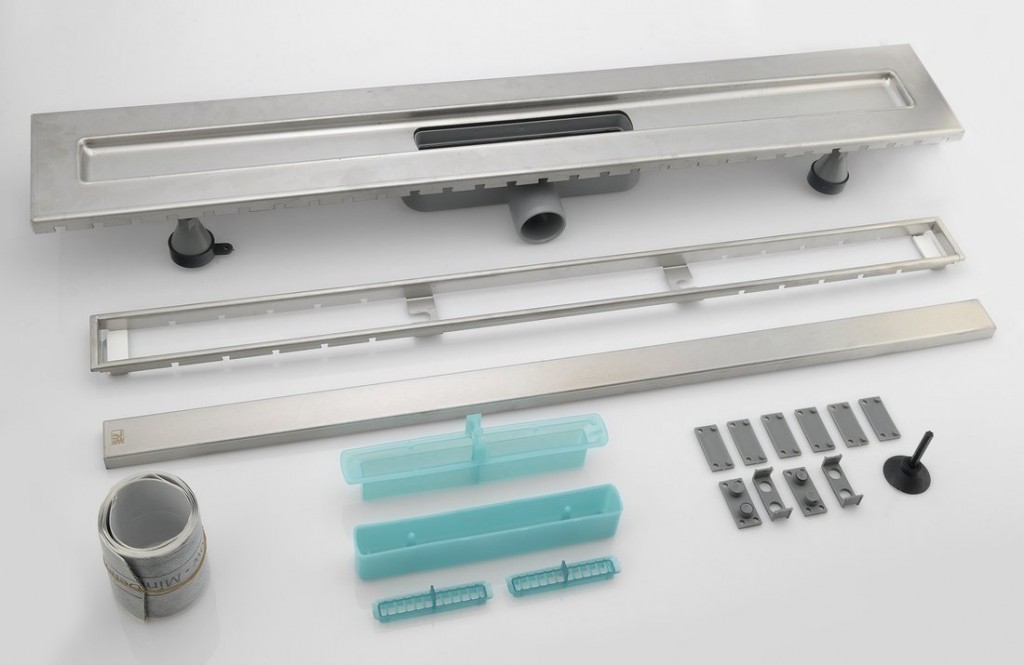 - Odpadní potrubí musí mít dostatečný spád, alespoň 2 cm/bm. Sprchové žlábky jsou k dostání v různých standardních délkách tak, aby mohl být vždy zvolen nejvhodnější rozměr. Pečlivě zkontrolujte (poté, co jste stanovili místo sprchového žlábku), zda je potřebný prostor k dispozici.