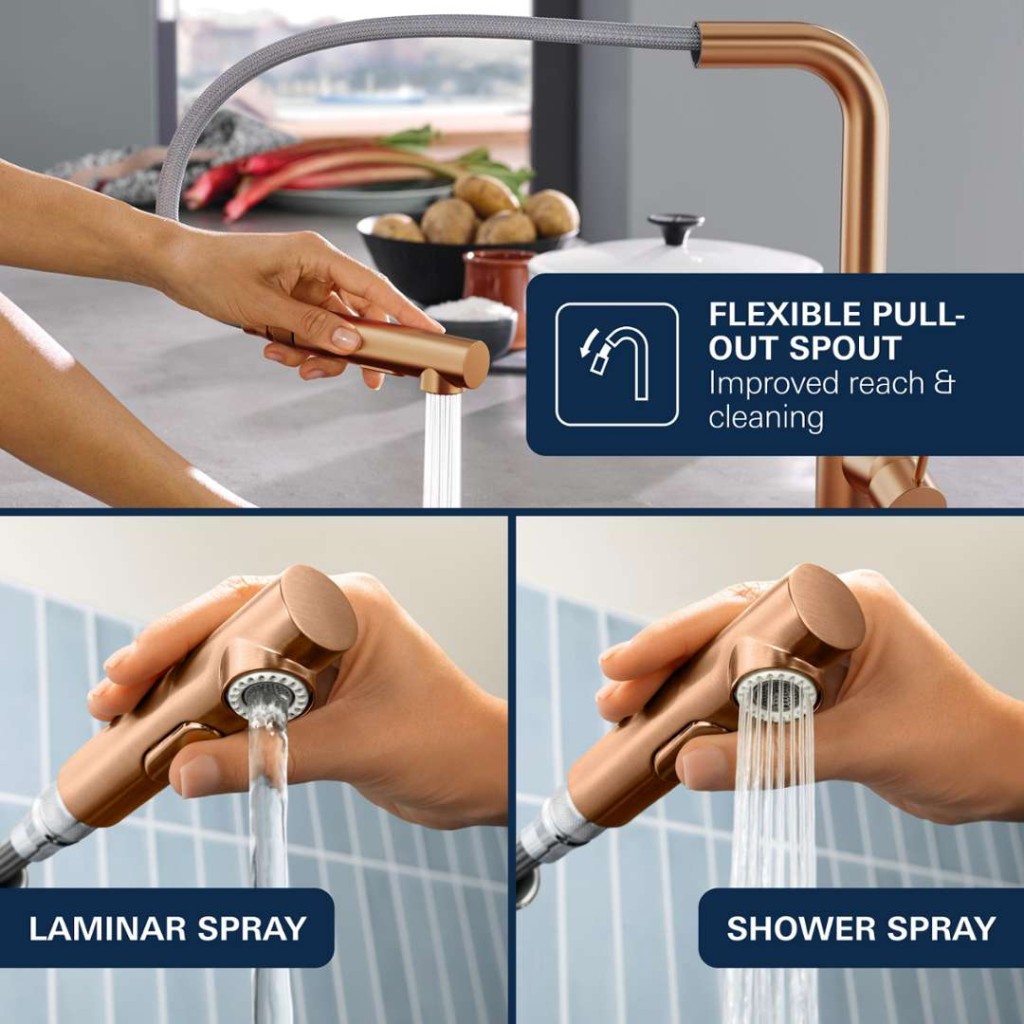 - vyťahovacie duálny spŕška - prepínanie medzi normálnym a sprchovým prúdom