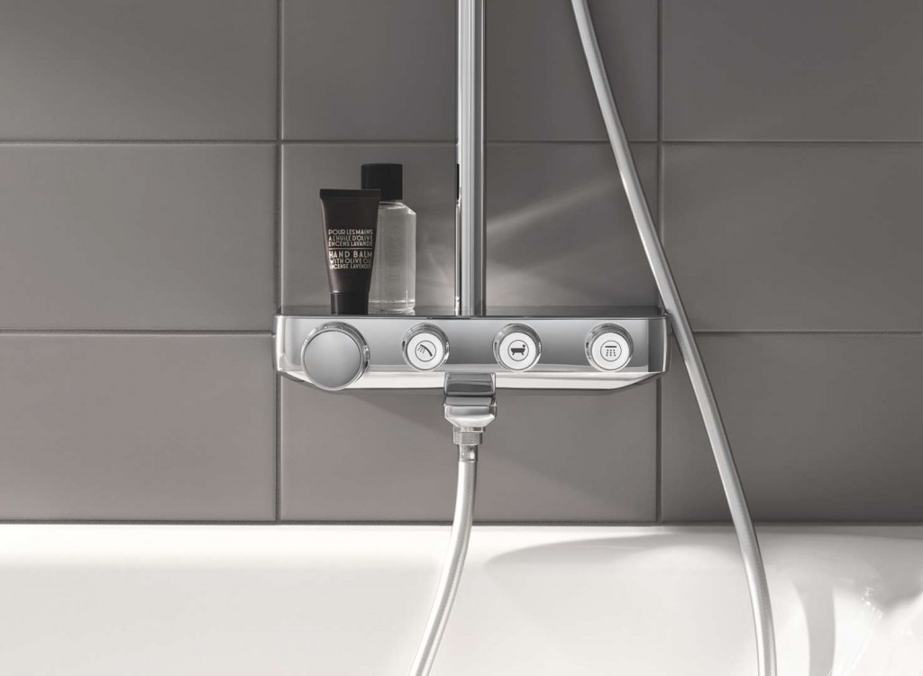 - nástenný termostat SmartControl umožňujúce zmenu medzi hlavovou a ručnou sprchou