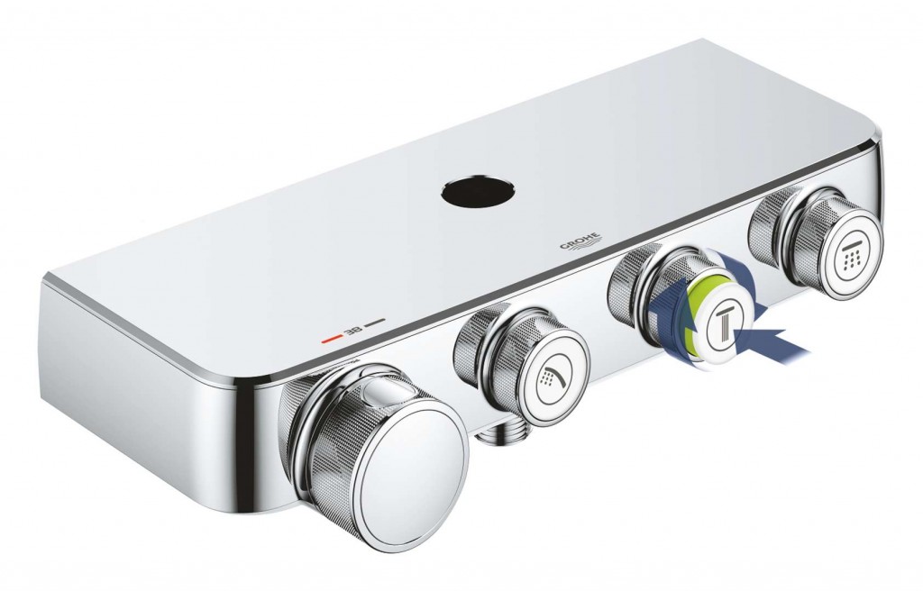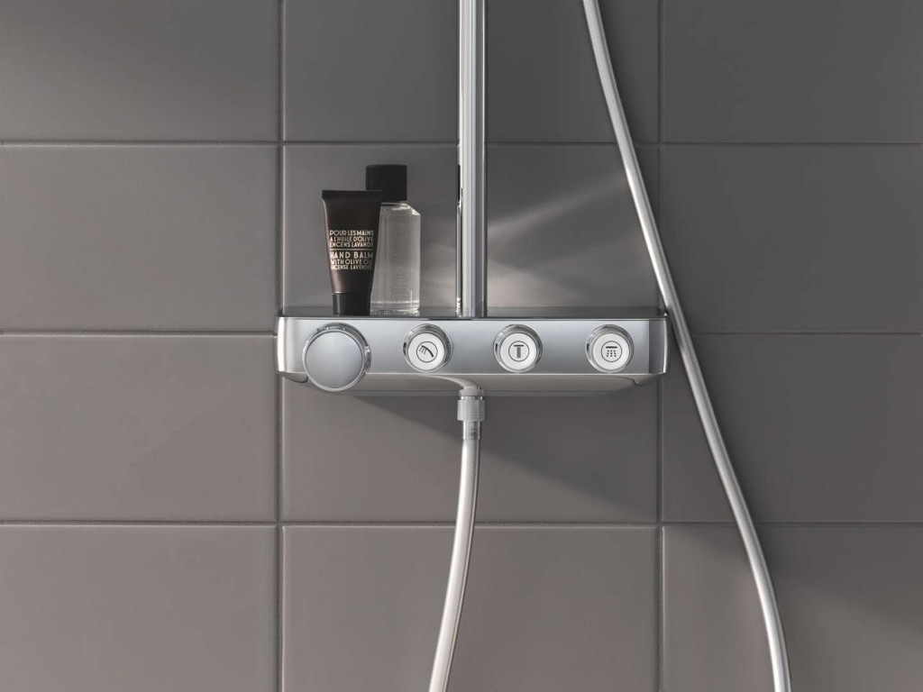 - nástenný termostat SmartControl umožňujúce zmenu medzi hlavovou a ručnou sprchou