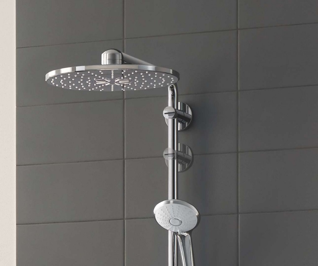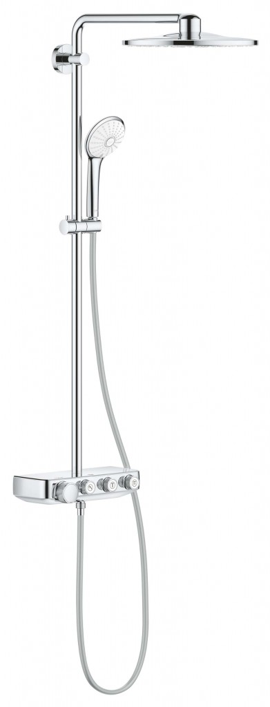 - hlavovú sprchu Rainshower 310 SmartActive s chrómovým sprchovým diskom, s režimom prúdu GROHE PureRain kombinovaným s výkonnou stredovou tryskou - systém DUO