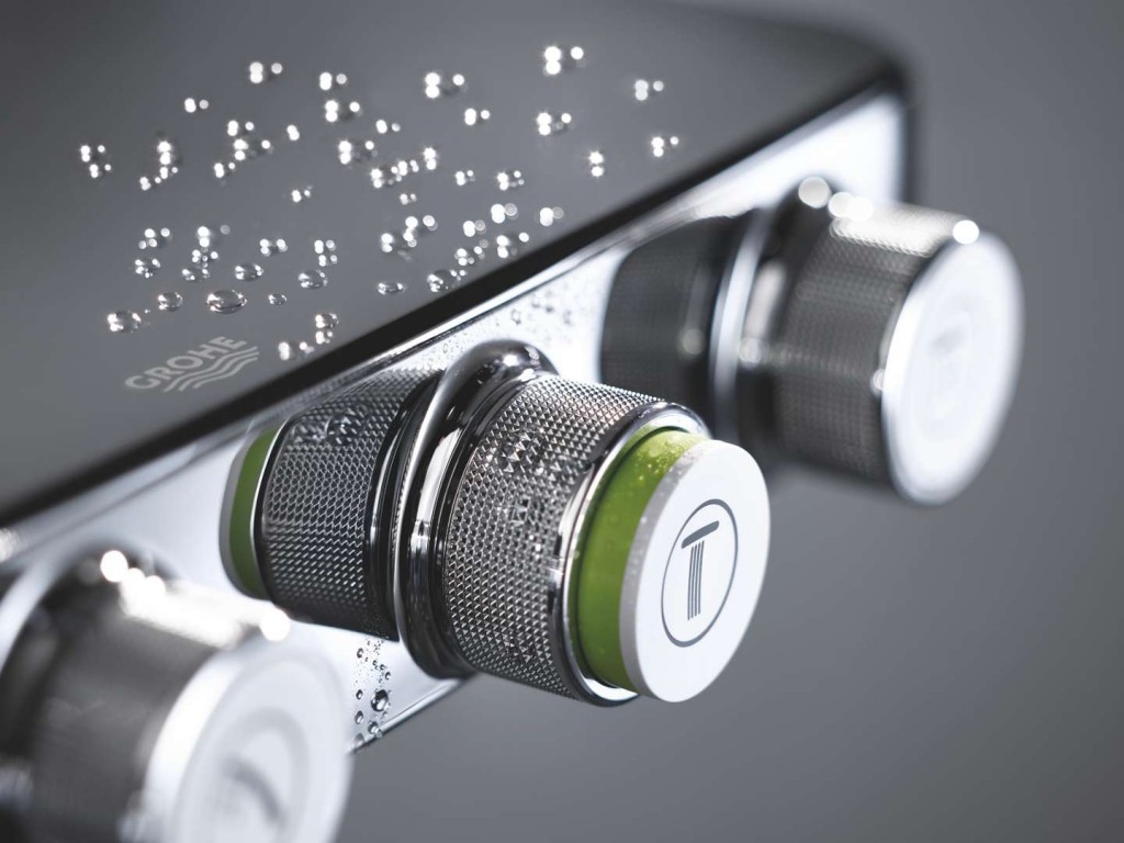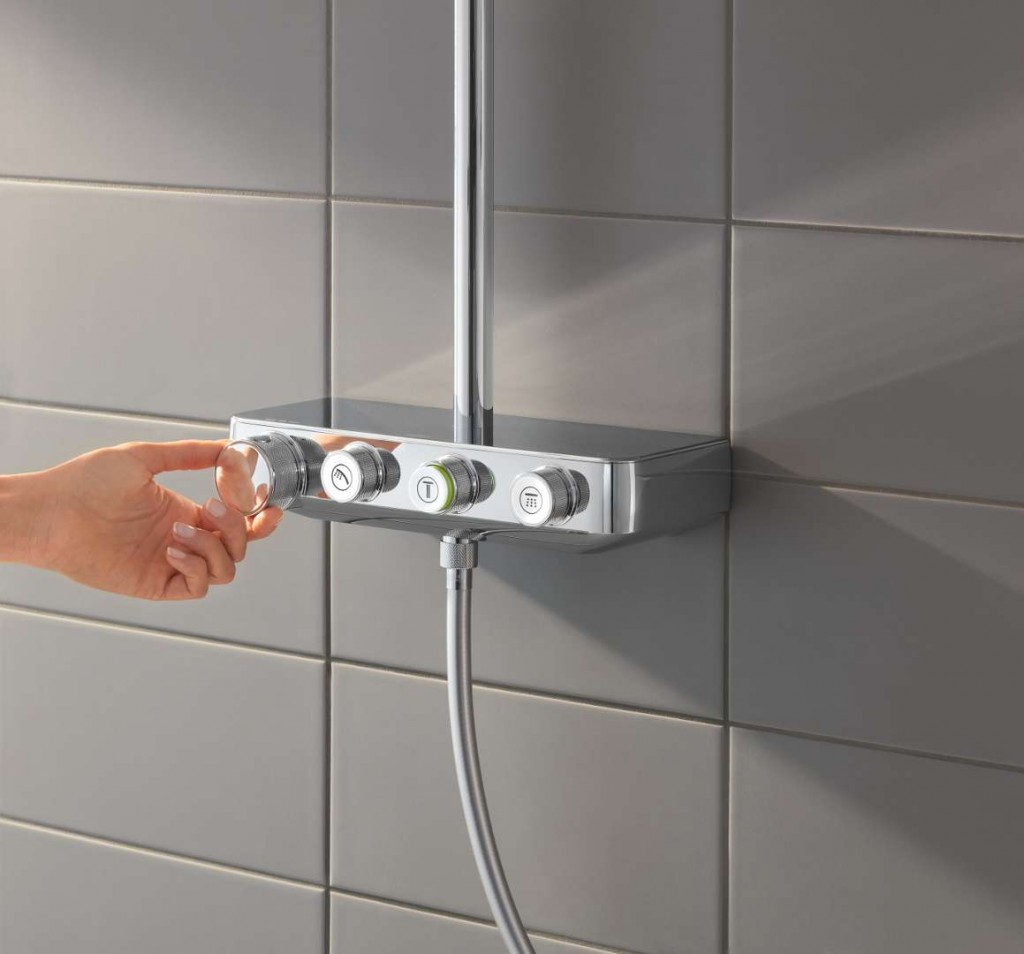 - nástenný termostat SmartControl umožňujúce zmenu medzi hlavovou a ručnou sprchou