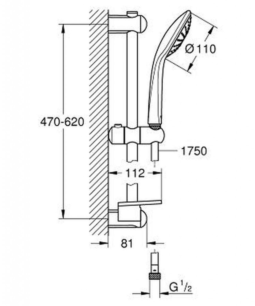 - GROHE QuickFix (horný držiak nastaviteľný pre prispôsobenie existujúcich otvorov)