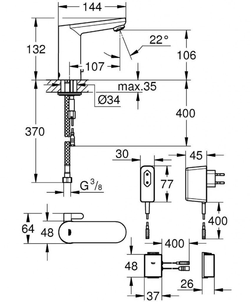 Mobilné zariadenia a GROHE IR Remote App *** nie sú súčasťou dodávky a je nutné objednať separátne prostredníctvom autorizovaného Apple store / obchodu / iTunes alebo obchodu Google Play.