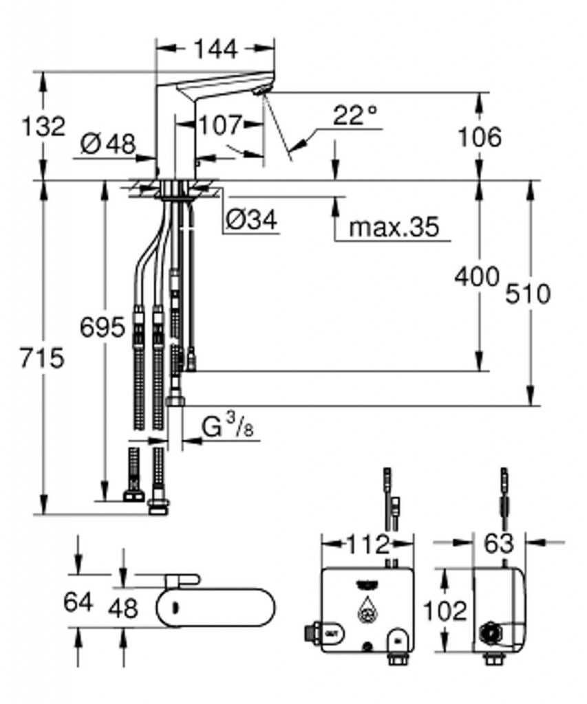 infračervená elektronická umývadlová batéria DN 15 so zmiešavacím zariadením a nastaviteľným obmedzovačom teploty