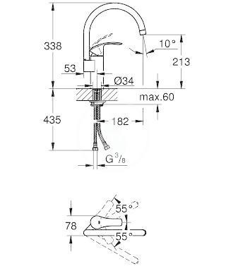 - otočná výpust - nastaviteľné otočenie o 0 ° / 150 ° / 360 °