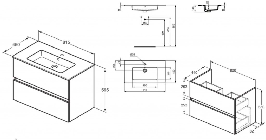 - rozmer umývadla: 140 x 815 x 450 mm (VxŠxH)