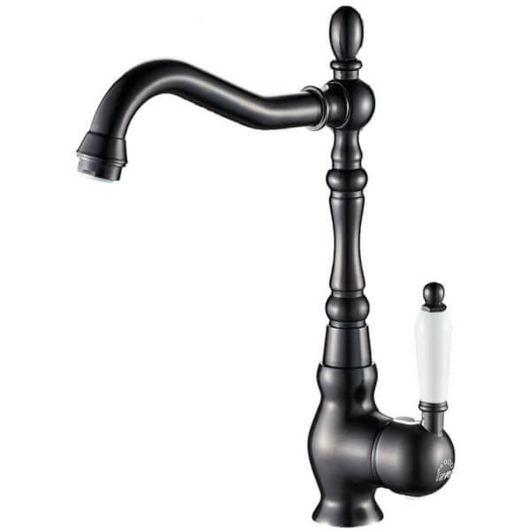 Keramická kartuša zaručuje plynulé ovládanie prietoku aj teploty vody. Výrazným estetickým prvkom je kontrastná biela rukoväť, ktorá podčiarkuje retro vzhľad batérie.