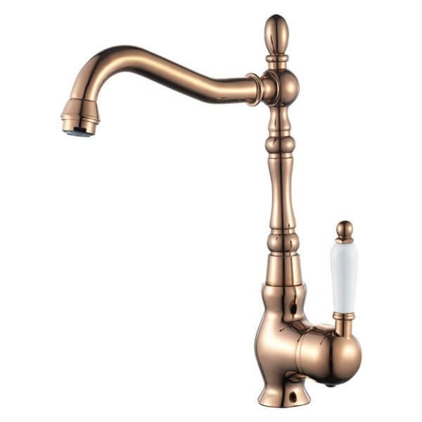 Keramická kartuša zaručuje plynulé ovládanie prietoku aj teploty vody. Výrazným estetickým prvkom je kontrastná biela rukoväť, ktorá podčiarkuje retro vzhľad batérie.