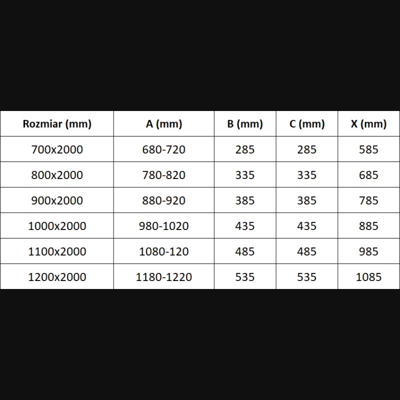 Špecifikácia produktu: Rozmer: 110x200 cm Montáž: Univerzálny Vchod: S výklopnými závesmi Farba skla: Priehľadná Typ skla: Tvrdené Hrúbka skla: 6 mm Profil: Hliník Povrchová úprava: Čierna Povlak pre ľahké čistenie Vyrovnanie nerovností steny Nastavenie šírky Možnosť montáže na sprchovú vaničku Hliníkový prah na tesnenie dverí