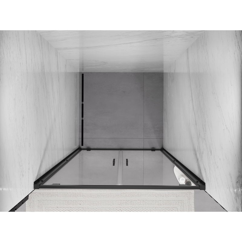 Špecifikácia produktu: Rozmer: 110x200 cm Montáž: Univerzálny Vchod: S výklopnými závesmi Farba skla: Priehľadná Typ skla: Tvrdené Hrúbka skla: 6 mm Profil: Hliník Povrchová úprava: Čierna Povlak pre ľahké čistenie Vyrovnanie nerovností steny Nastavenie šírky Možnosť montáže na sprchovú vaničku Hliníkový prah na tesnenie dverí