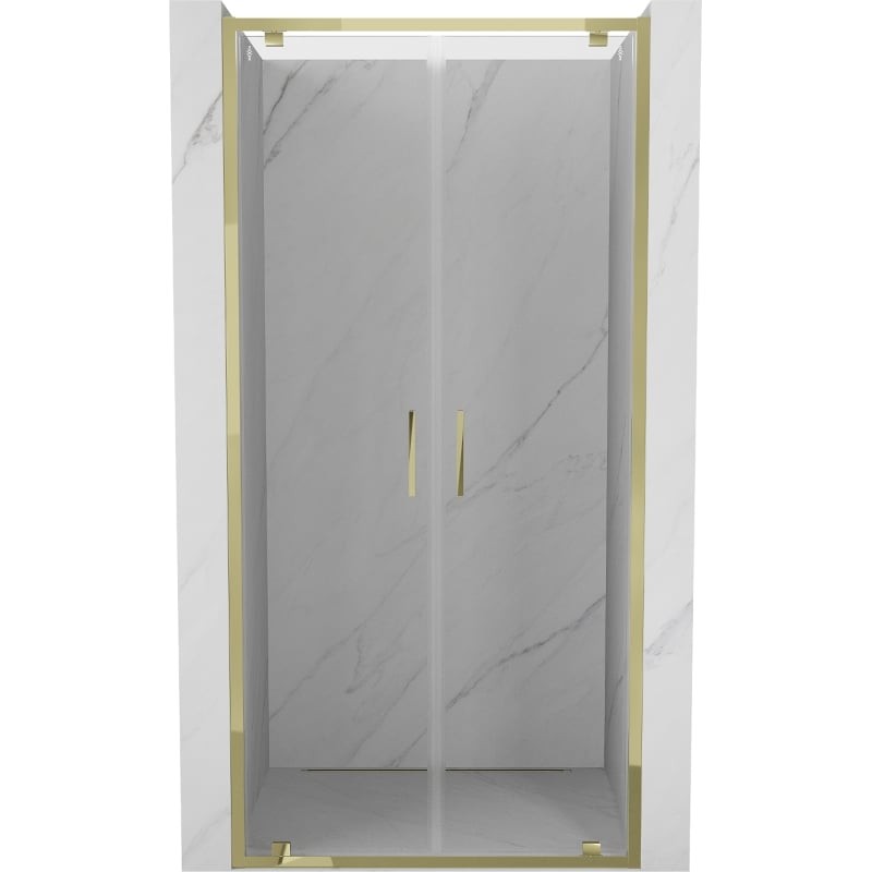 Špecifikácia produktu: Rozmer: 110x200 cm Montáž: Univerzálny Vstup: S pánty Farba skla: Priehľadná Typ skla: Tvrdené Hrúbka skla: 6 mm Profil: Hliník Povrchová úprava: Zlatý náter pre ľahké čistenie Vyrovnanie nerovností steny Nastavenie šírky Možnosť montáže na sprchovú vaničku alebo obj. Hliníkový prah na tesnenie dverí
