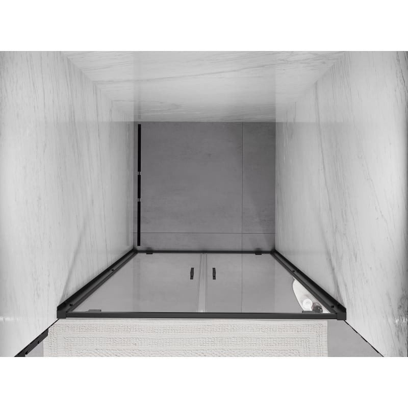 Špecifikácia produktu: Rozmer: 120x200 cm Montáž: Univerzálny Vchod: S výklopnými závesmi Farba skla: Priehľadná Typ skla: Tvrdené Hrúbka skla: 6 mm Profil: Hliník Povrchová úprava: Čierna Povlak pre ľahké čistenie Vyrovnanie nerovností steny Nastavenie šírky Možnosť montáže na sprchovú vaňu Hliníkový prah na tesnenie dverí