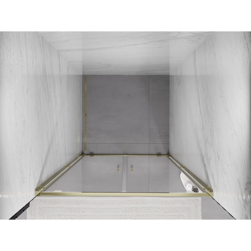 Špecifikácia produktu: Rozmer: 120x200 cm Montáž: Univerzálny Vstup: S pánty Farba skla: Priehľadná Typ skla: Tvrdené Hrúbka skla: 6 mm Profil: Hliník Povrchová úprava: Zlatý náter pre ľahké čistenie Vyrovnanie nerovností steny Nastavenie šírky Možnosť montáže na sprchovú vaničku alebo obj. Hliníkový prah na tesnenie dverí