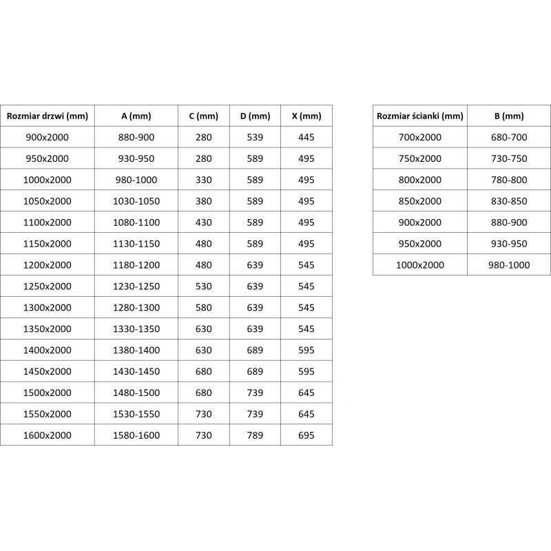 Rozmer: 125x75 cm (dvere 125 cm, stena 75 cm)
