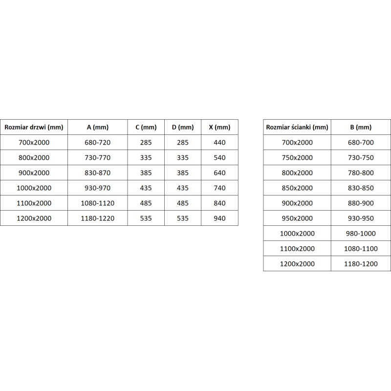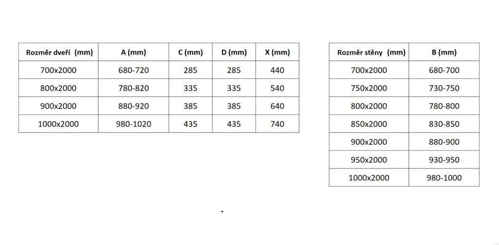 Rozmer: 90x85 cm (dvere 90 cm, stena 85 cm)