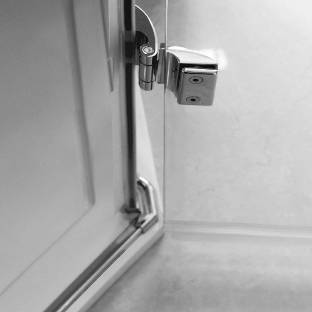 Sprchovací kút obsahuje tenkú spodnú lištu pod dvere.