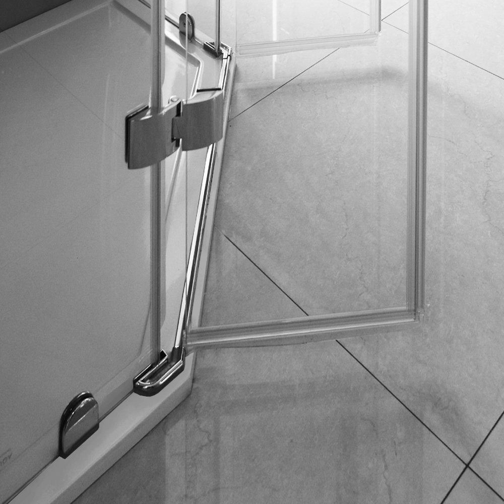 Sprchovací kút obsahuje tenkú spodnú lištu pod dvere.