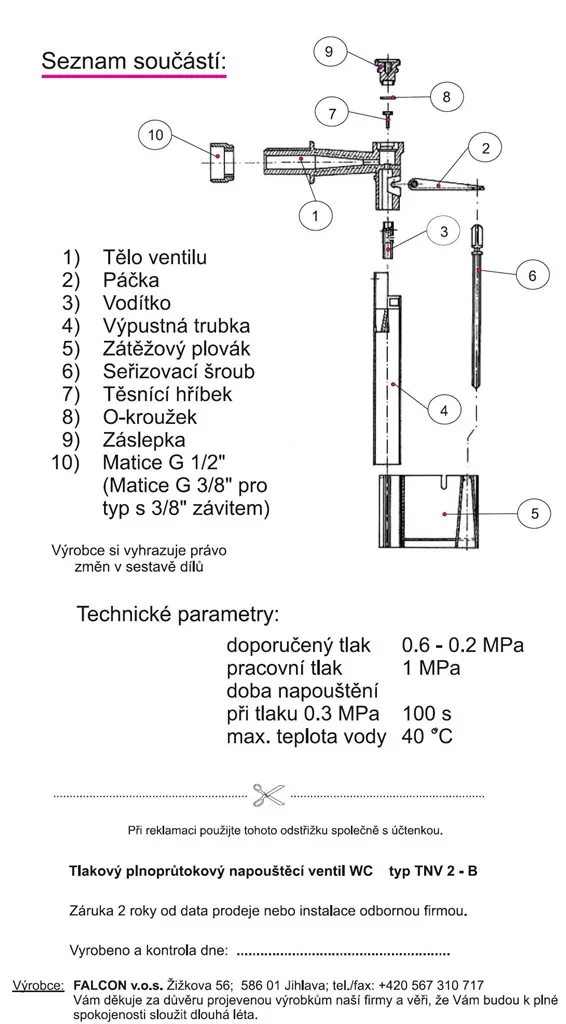 | Adresa výrobce: | Plast Brno, spol. s r.o. Jarní 42, Brno, 614 00 |