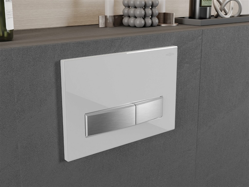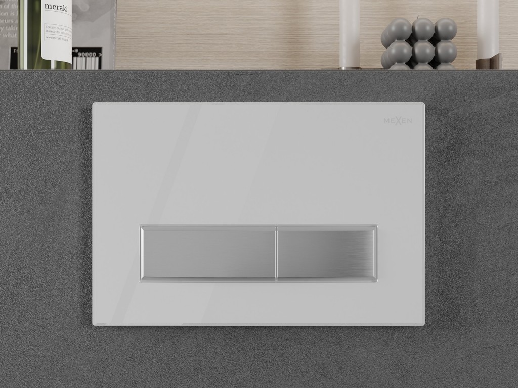 Ovládacie dvojčinné plastové tlačidlo je určené k podomietkovej splachovacej nádrži Mexen Fenix Slim - 60100, Fenix Air - 60500 od výrobca MEXEN a je kompatibilné s Geberit Sigma UP300 a UP320.