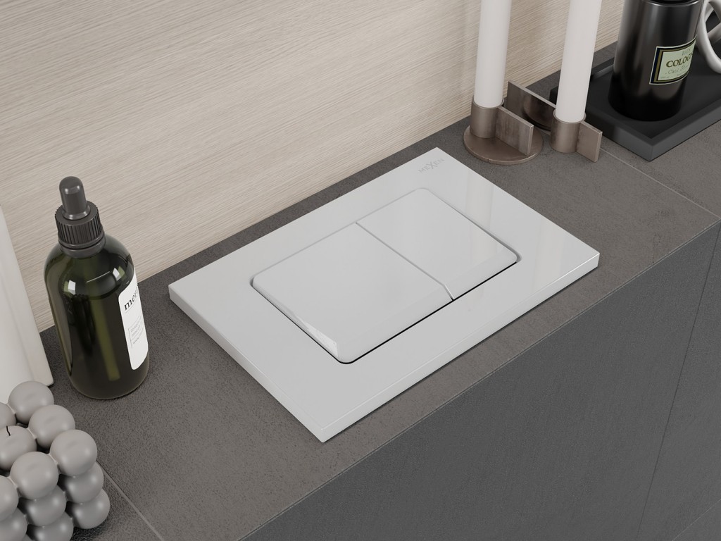 Ovládacie dvojčinné plastové tlačidlo je určené k podomietkovej splachovacej nádrži Mexen Fenix XS-F-60800 , Fenix XS-U-60850 .