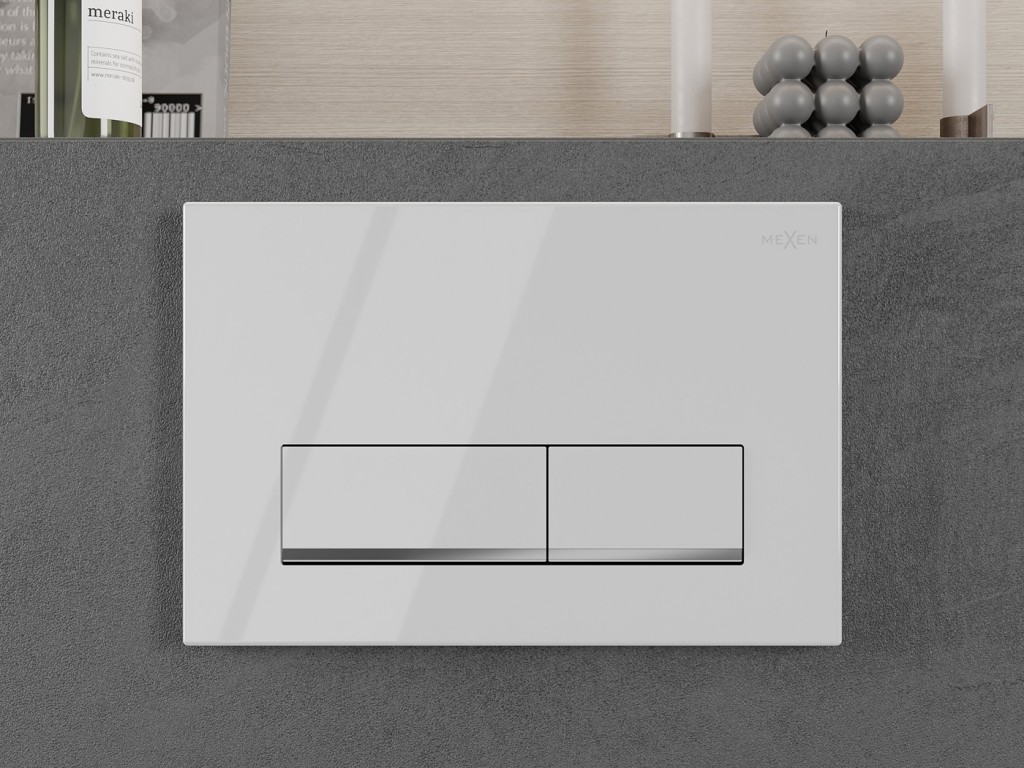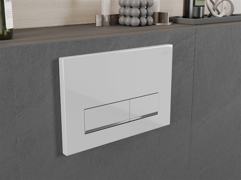 Ovládacie dvojčinné plastové tlačidlo je určené k podomietkovej splachovacej nádrži Mexen Fenix Slim - 60100 , Fenix Air - 60500 od výrobcu MEXEN a je kompatibilný s Geberit Sigma UP300 a UP320 .