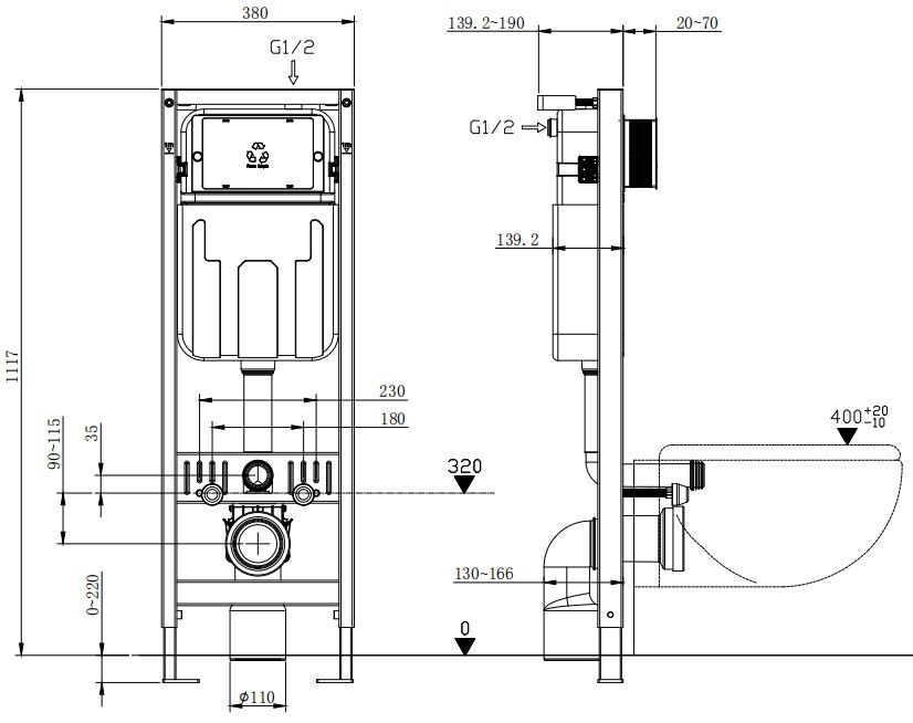 Pre závesnú misku s rozstupom otvorov 18 cm alebo 23 cm