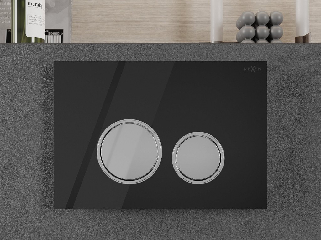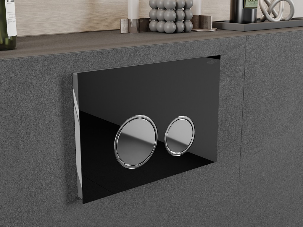 Ovládacie dvojčinné sklenené tlačidlo je určené na podomietkové splachovacie nádrže FENIX SLIM - 60100, FENIX AIR - 60500 od výrobcu MEXEN a je kompatibilný s Geberit Sigma UP300 a UP320 .