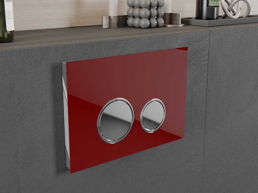 Ovládacie dvojčinné sklenené tlačidlo je určené na podomietkové splachovacie nádrže FENIX SLIM - 60100, FENIX AIR - 60500 od výrobcu MEXEN a je kompatibilný s Geberit Sigma UP300 a UP320 .
