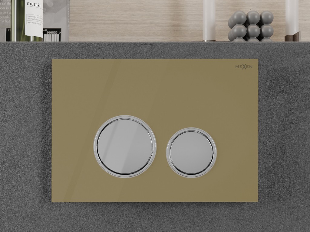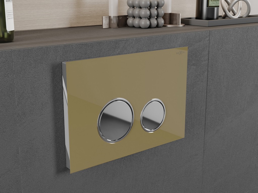 Ovládacie dvojčinné sklenené tlačidlo je určené na podomietkové splachovacie nádrže FENIX SLIM - 60100, FENIX AIR - 60500 od výrobcu MEXEN a je kompatibilný s Geberit Sigma UP300 a UP320 .
