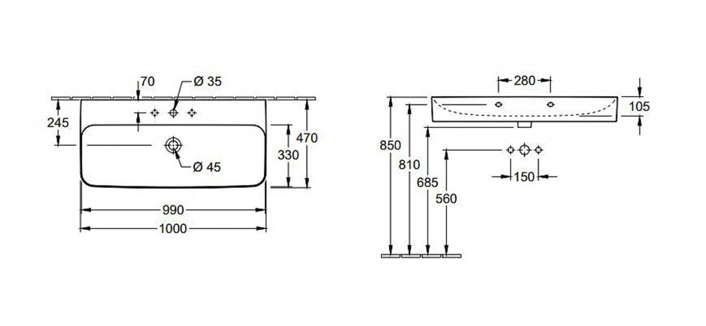 Umývadlo obdĺžnikového tvaru s CeramicPlus