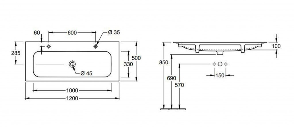 Nábytkové dvojumývadlo bez prepadu s CeramicPlus, 2 otvory