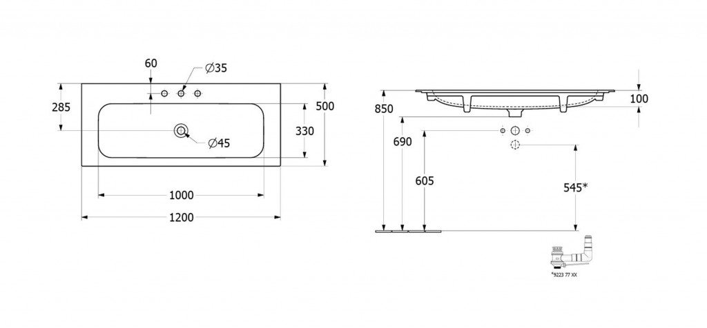- vhodné na umývadlovú dosku alebo na skrinku