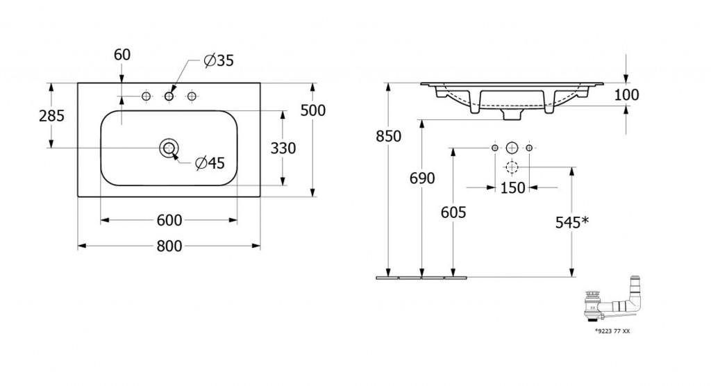 Nábytkové umývadlo obdĺžnikového tvaru na dosku s CeramicPlus
