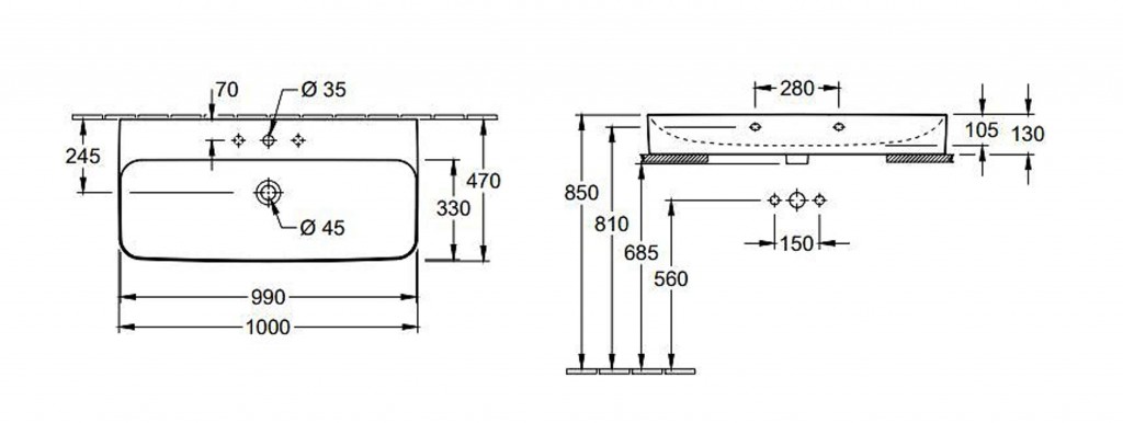 Nábytkové umývadlo obdĺžnikového tvaru s CeramicPlus