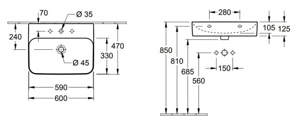 Nábytkové umývadlo obdĺžnikového tvaru so skrytým prepadom
