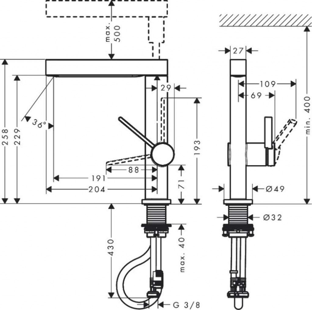 - výtokové rameno je možné vytiahnuť ako spŕšku až o 500 mm