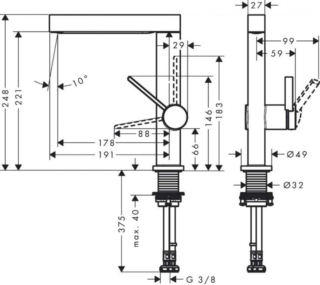 Finoris Páková umývadlová batéria 230 s otočným výtokom a odtokovou súpravou Push-Open