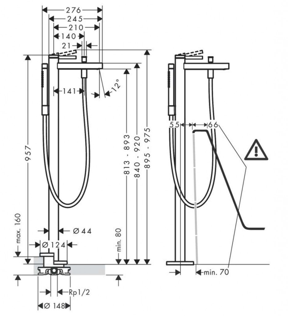 Vaňová batéria Finoris na podlahu, bez telesa
