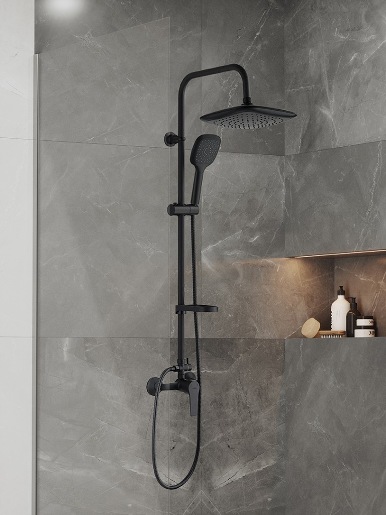Sprchový stĺp Fiona je kombináciou elegancie a funkčnosti, ktorá dokonale doplní každú kúpeľňu. K dispozícii v dvoch farbách – klasickom chróme a tmavo čiernej – sa bez problémov hodí do moderných aj tradičnejších interiérov. Jeho elegantná silueta a starostlivo spracované detaily dodávajú priestoru jedinečný charakter a zdôrazňujú minimalistický štýl. Štvorcová dažďová sprchová hlavica a ručná sprcha s jemne zaoblenými hranami kombinujú modernú geometriu s jemnými líniami a ponúkajú nielen elegantný vzhľad, ale aj rovnomerný a príjemný prúd vody. Keramický prepínač sprchy umožňuje ľahké prepínanie medzi dažďovou sprchovou hlavicou a ručnou sprchou, čím zvyšuje každodenné pohodlie. Nastaviteľná rukoväť navyše umožňuje presné nastavenie uhla ručnej sprchy a zaisťuje tak úplnú voľnosť a pohodlie pri sprchovaní. Stĺp Fiona je vybavený 150cm hadicou, ktorá zaisťuje úplnú voľnosť pohybu. Hladký povrch a vysoko kvalitný náter uľahčujú čistenie, zabraňujú usadzovaniu vodného kameňa a pomáhajú dlhodobo udržiavať estetický vzhľad. Či už zvolíte klasický chróm alebo výraznú matnú čiernu, sprchový stĺp Fiona dodá vašej kúpeľni eleganciu a spojí moderný dizajn s riešeniami, ktoré zvyšujú komfort používania.