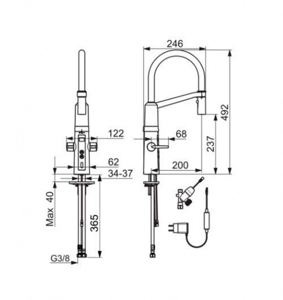 - inštalácia: na pracovnú dosku, do hrúbky 40 mm