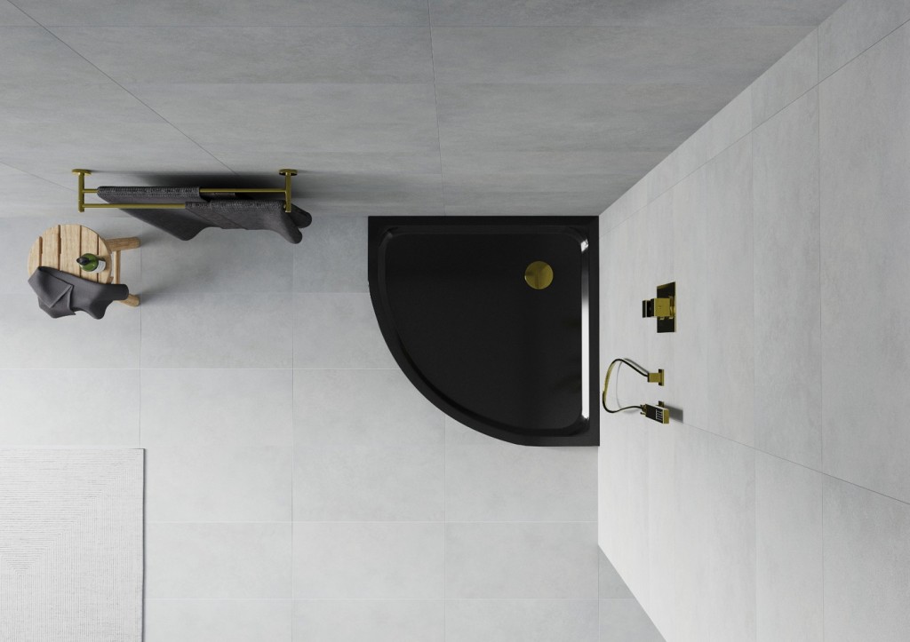 Vanička séria FLAT SLIM štvrťkruhového tvaru je dostupná vo veľkostiach 70x70, 80x80, 90x90x a 100x100 cm. Vaničku je možné vybrať vo farebnom prevedení biela a chróm, a vybrať je možné so sifónom, ktorý má zátku v chrómovom, zlatom alebo čiernom prevedení.
